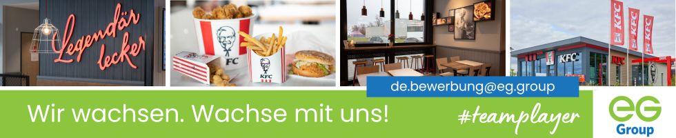 Die weltweit operierende EG Group betreibt deutschlandweit Tankstellen unter anderem der Marke Esso und ist zudem sehr erfolgreich im Bereich der Systemgastronomie. So werden unter anderem auch diverse KFC-Restaurants durch das Tochterunternehmen EG Deutschland K-Holding GmbH betrieben. Die Anzahl unserer Restaurant steigt durch unsere Wachstumsstrategie stetig.